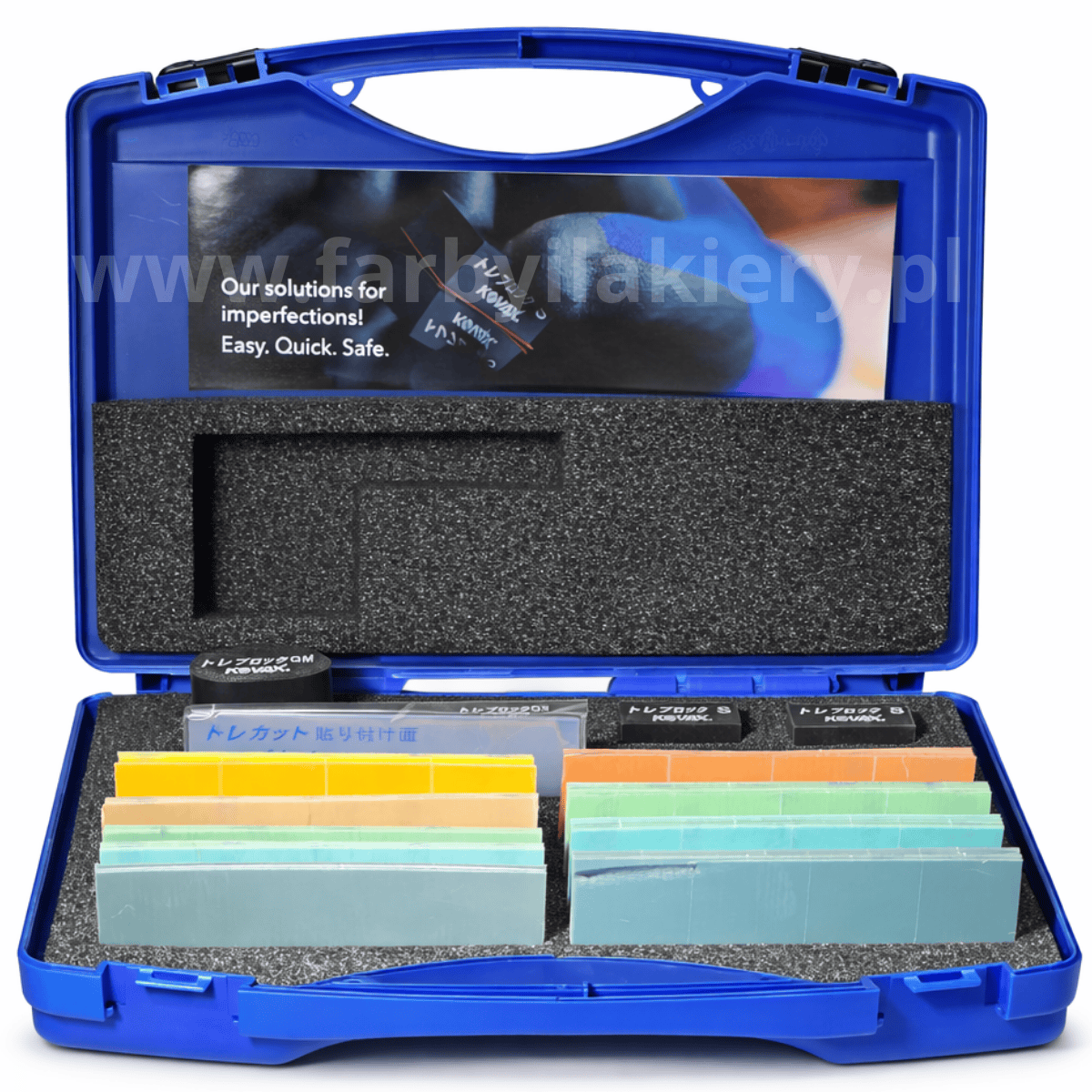 KOVAX TOLEKIT to kompletny, kompaktowy zestaw do precyzyjnego usuwania wtrąceń i niedoskonałości z powierzchni lakieru. Został zaprojektowany z myślą o maksymalnej kontroli pracy i perfekcyjnym wykończeniu, niezależnie od miejsca naprawy. Wszystkie elementy systemu Tolecut znajdują się w jednym, poręcznym zestawie, dzięki czemu masz pod ręką pełen asortyment do lokalnych korekt lakierniczych.