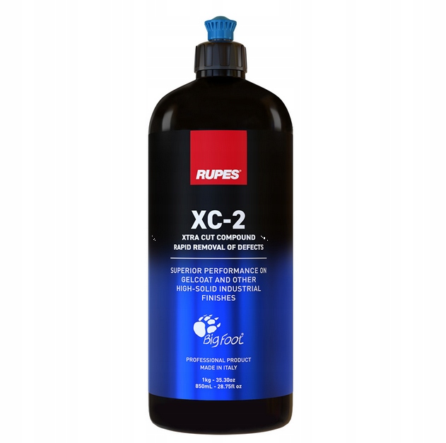 RUPES Xtra Cut Compound XC-2 to uniwersalna pasta polerska, kompatybilna z różnymi typami maszyn polerskich, w tym polerkami dual action i rotacyjnymi. Formuła XC-2 została opracowana specjalnie do szybkiego usuwania defektów z powierzchni żelkotu i innych wykończeń przemysłowych o wysokiej zawartości ciał stałych, blatów oraz twardych lakierów stosowanych w przemyśle lotniczym. Doskonała do stosowania po procesie szlifowania lub do usuwania oksydacji i innych zanieczyszczeń.